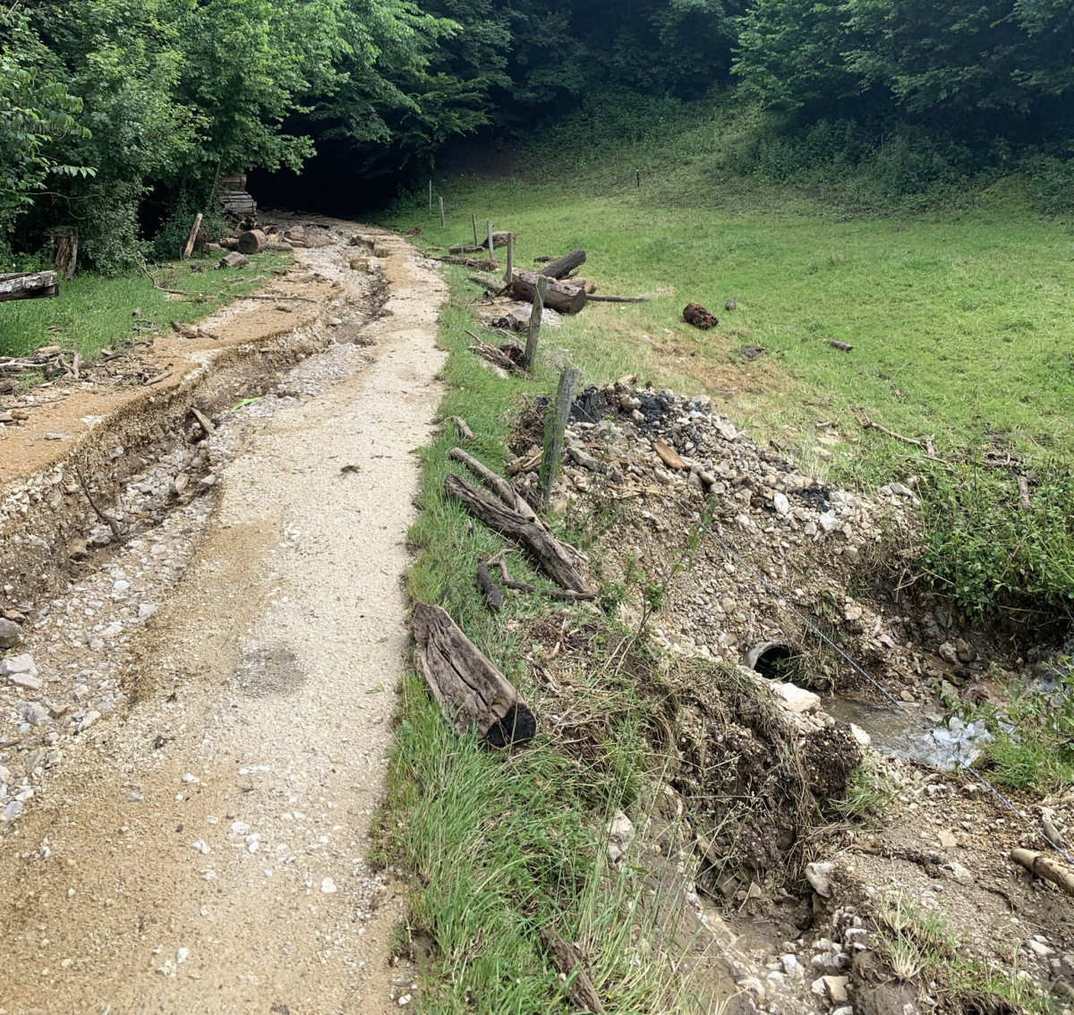 In der Nacht vom 23. auf den 24. Juni 2021 kam es im gesamten Oberbaselbiet zu heftigen Gewittern mit Hagel und Starkregen. Etliche Strassen mussten kurzzeitig gesperrt werden. Dieses Ereignis und der Regen der vorangegangenen Wochen verursachten viele Schäden entlang von Gewässern. Die Mitarbeiter des Tiefbauamts sind auch im nächsten Jahr noch mit der Behebung dieser Schäden beschäftigt.