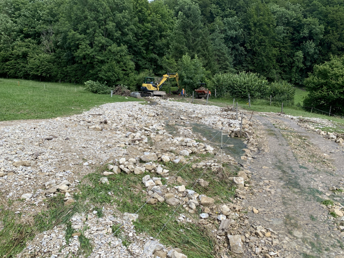 Rund drei Wochen nach dem Unwetterereignis startete die Behebung der Schäden in einer tieferen Prioritätsklasse. Die definitive Beseitigung aller Schäden sowie die Instandstellung der Schutzbauten wird die Mitarbeitenden der Gewässerunterhaltsgruppe auch im nächsten Jahr intensiv in Anspruch nehmen.