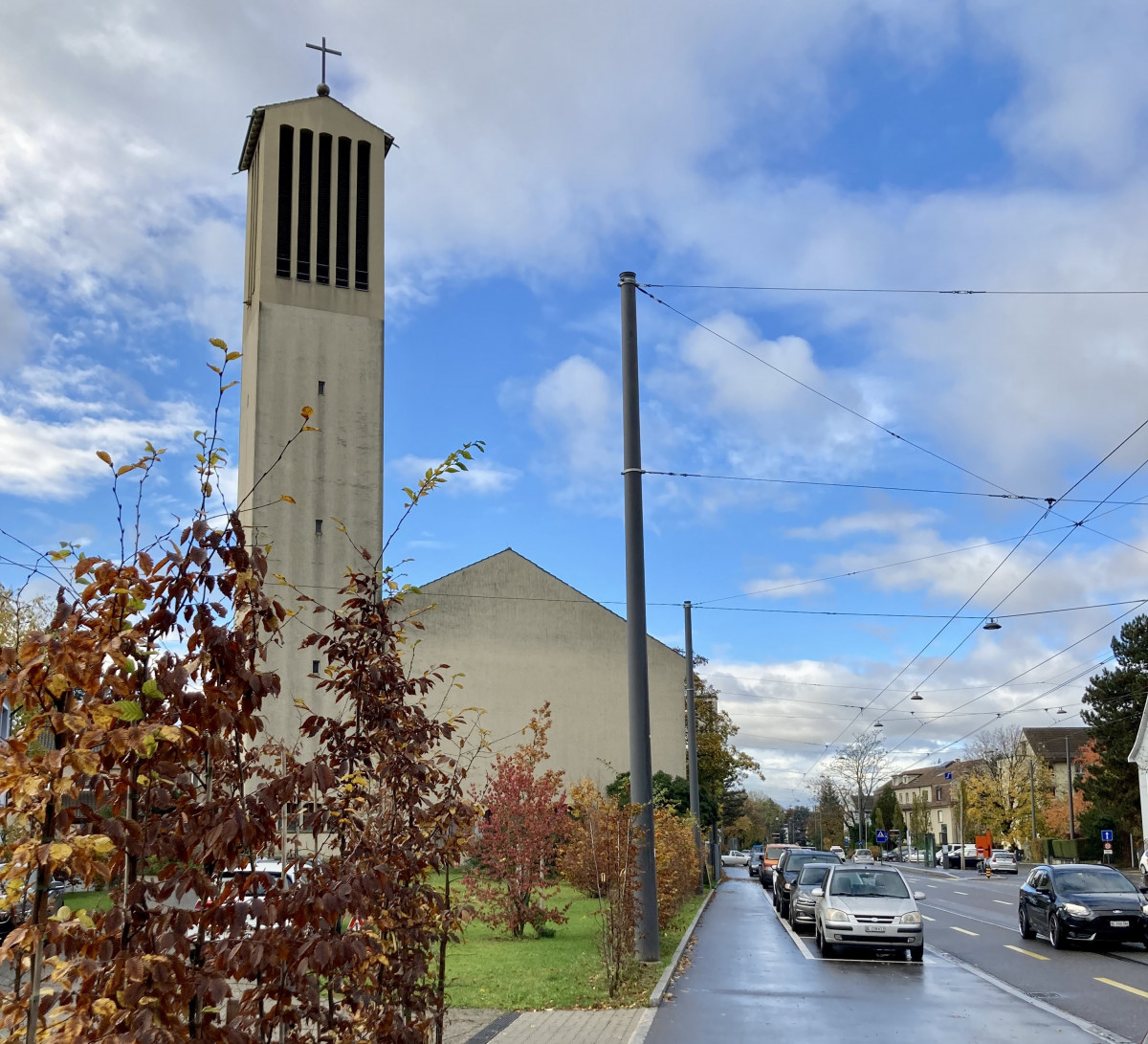 Das bestehende Turmgebäude im Osten wird bis auf die tragenden Betondecken und Stützen zurückgebaut und mit einem neuen Kernbereich versehen. Darin sind die Lift- und Treppenanlagen, WC-Anlagen und Steigschächte vorgesehen. Im äusseren Ring um den Kern sind ab dem 1. OG die Unterrichts- und Vorbereitungszimmer angeordnet. Im EG befinden sich die Büros und Besprechungszimmer der Verwaltung.