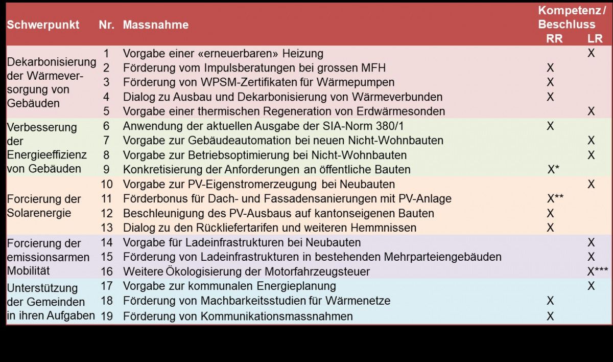 Energiepolitische Schwerpunkte und neue Massnahmen