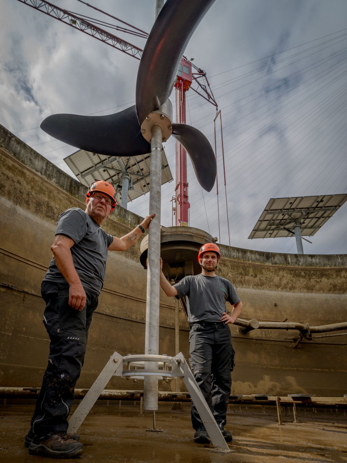 Bakterien reinigen das Abwasser – Rührwerke stellen den Kontakt her