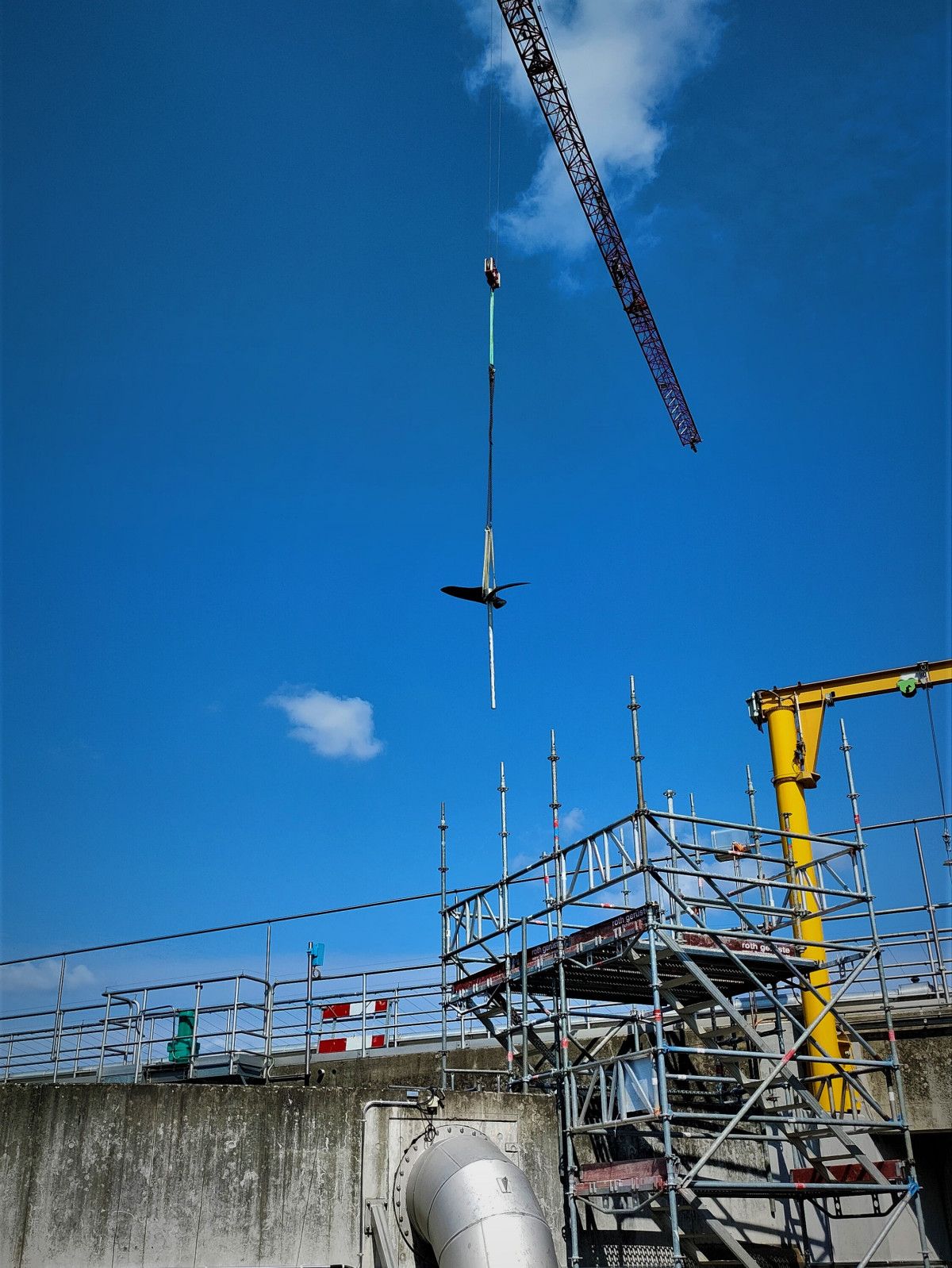 Eines von 20 Rührwerken während der Montage. Die fünf Klärbecken mussten dazu nacheinander für jeweils drei Wochen ausser Betrieb genommen werden. (Quelle: ZVG)