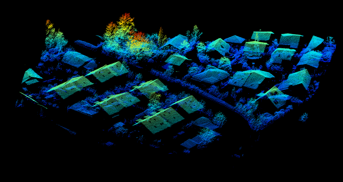 Visualisierung von LiDAR-Punktwolkendaten mit einer Farbgebung nach der Höhe über Grund (Quelle: ARP)