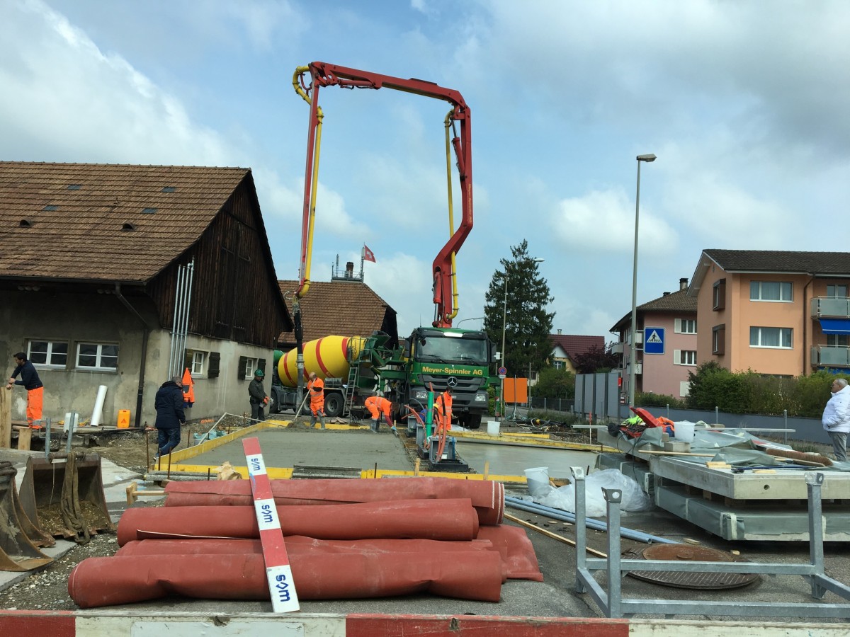 Betonieren der neuen Bodenplatte mit Pumpbeton (Quelle: HBA)
