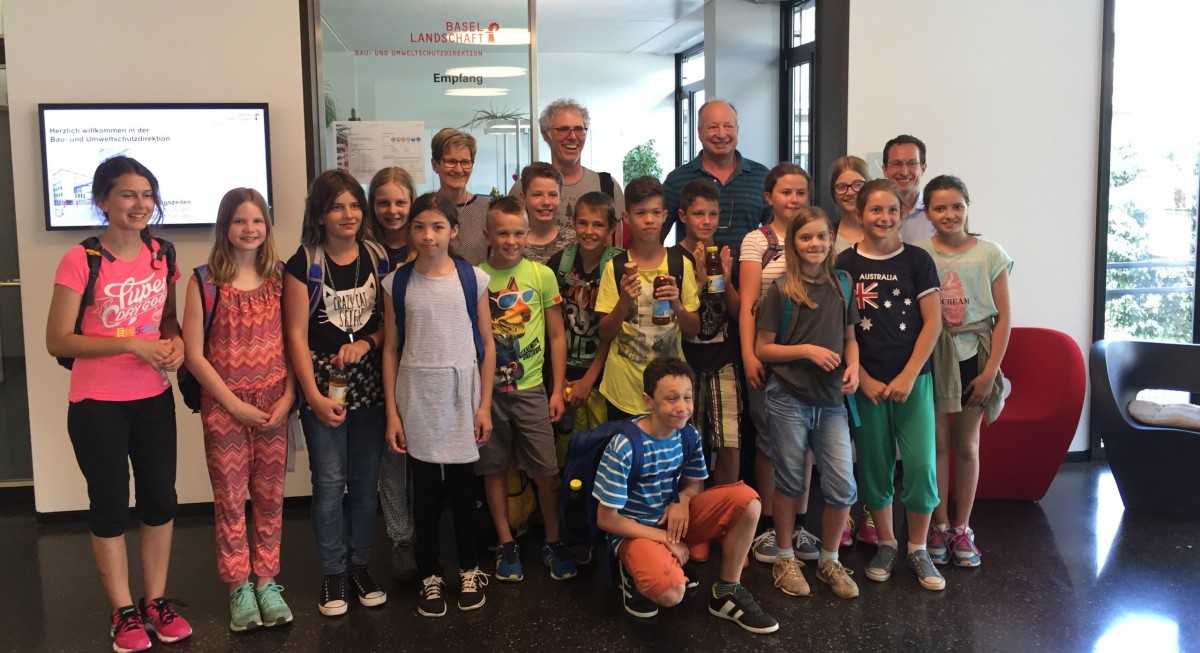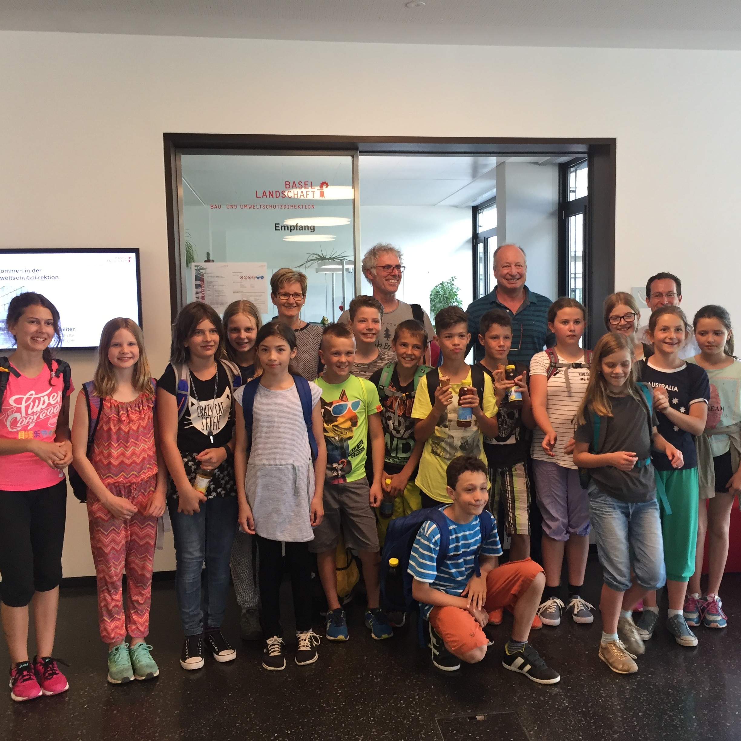 Regierungsrätin Sabine Pegoraro hat die 5. Schulklasse von Lupsingen mit ihrem Lehrer Guido Schnetz am 2. Juni 2017 in der BUD empfangen zu einer Würdigung ihrer Arbeit und zur Verdankung des Geschenks. Die Klasse war mit dem Fahrrad angereist und alle erhielten eine Glace und ein Getränk als Stärkung für die Rückreise nach Lupsingen.